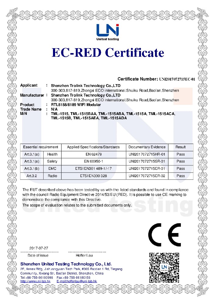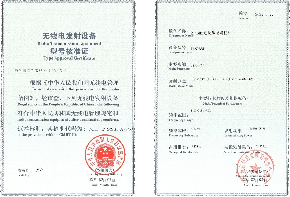 成立于2005年,是國家級高新技術企業,深圳市寶安區“規上企業”。專注WiFi模塊,路由模塊、IOT模塊研發和生產,承接OEM、ODM訂單。公司自主研發、生產和銷售。通過ISO9001質量管理體系認證。擁有標準化SMT流水生產線,全新雅馬哈高速貼片機多臺,擁有IQ flex、極致匯儀,WiFi、藍牙自動測試儀多臺,擁有自動化測試機器多臺。獲得多項知識產權及FCC、CE、Telec等多個國際技術認證。擁有多位軟硬件工程師,同主流WiFi芯片原廠REALTEK、MTK、高通保持良好合作關系。