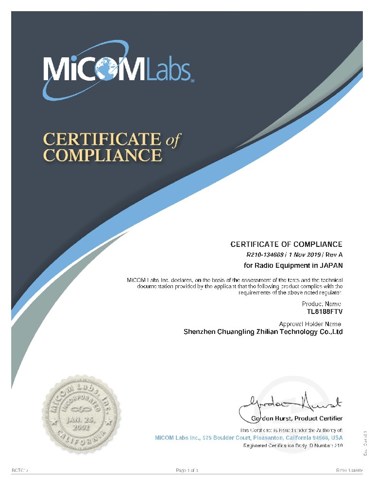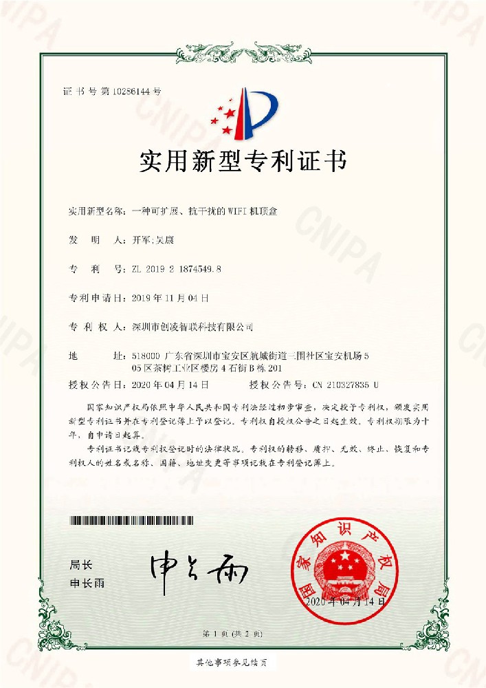 獲得多項知識產權及FCC、SRRC、CE、Telec、ROHS等多個國際技術認證